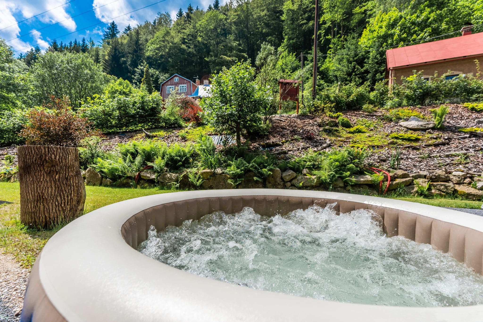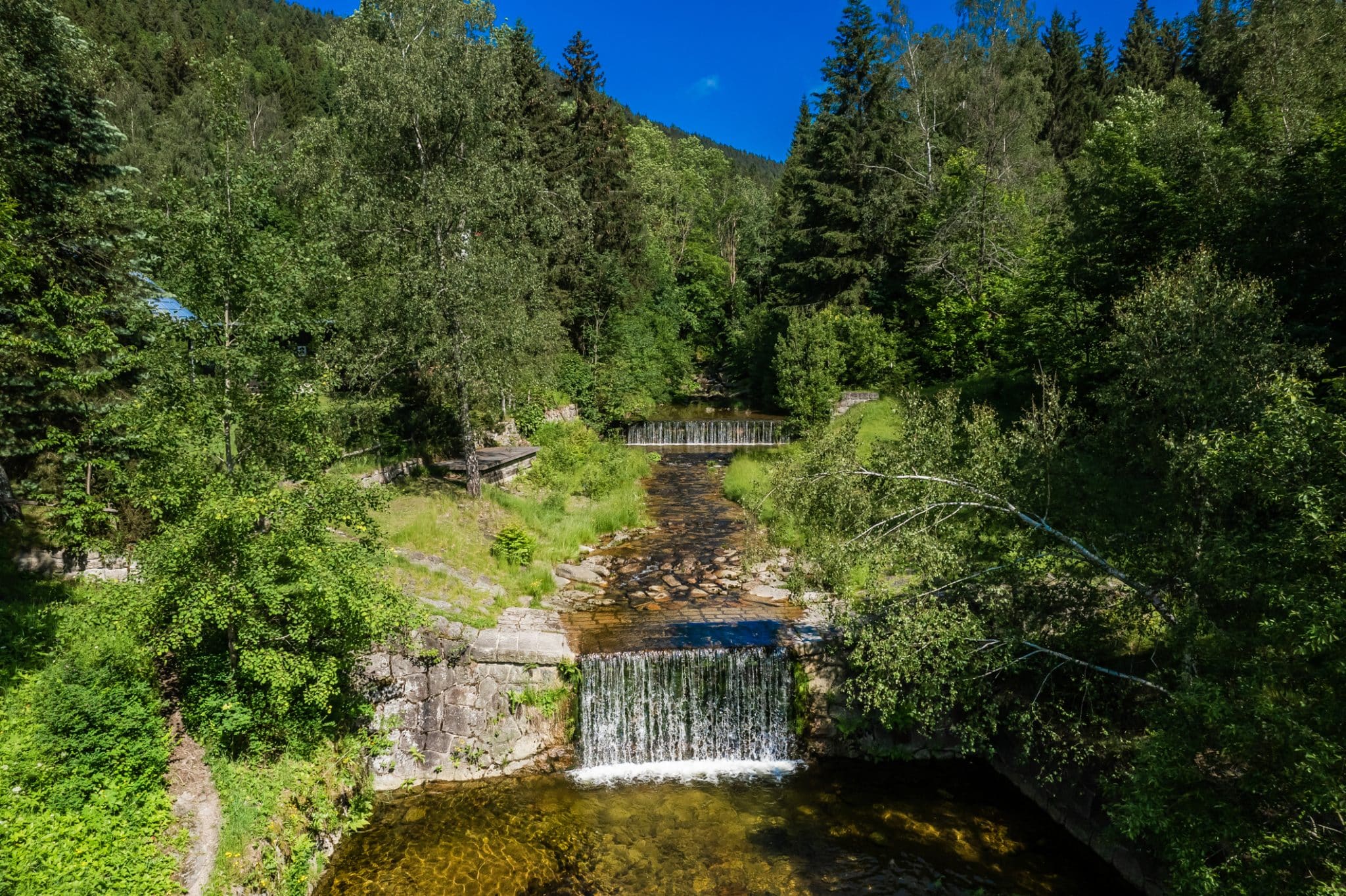In den Sommermonaten natürliches Baden in den weißen Wasserfällen von Desna. Gegenüber dem Appartementhaus befindet sich ein Naturschwimmbad (Desna-Weißwasserfälle).